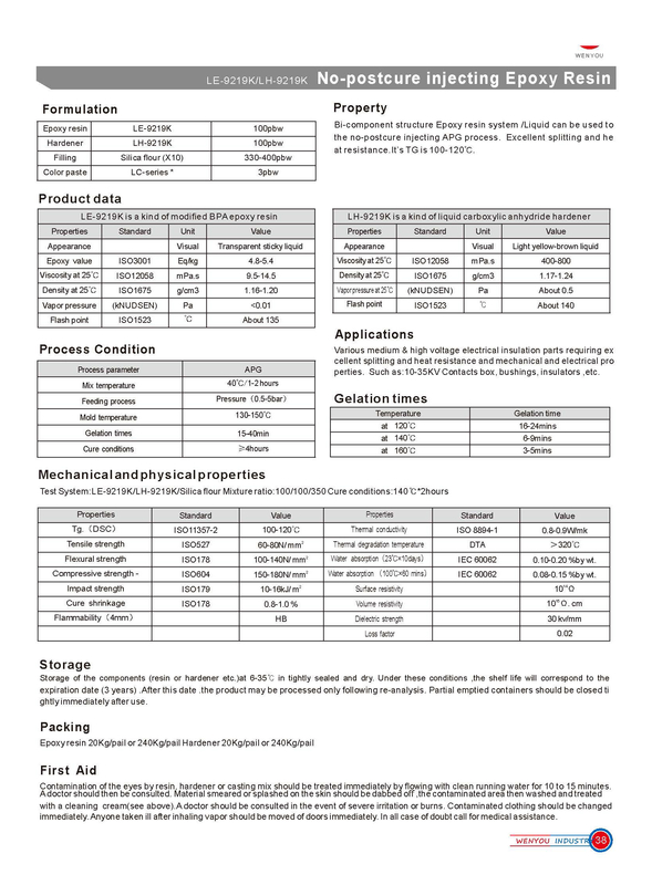 Questo sistema di resina epossidica a due componenti (liquido) è progettato per i processi di colata APG e convenzionali sotto vuoto. Presenta un'eccellente resistenza allo splitting e al calore con un intervallo TG di 100-120°C.